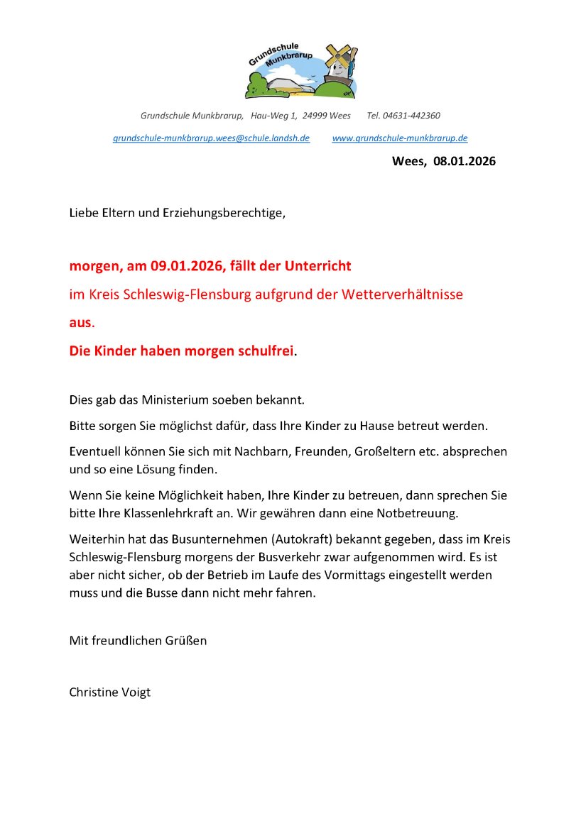 Unterrichtsausfall am Freitag, 09.01.2026!