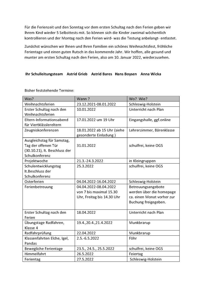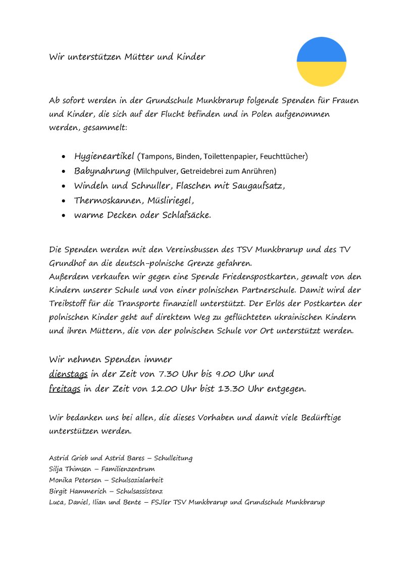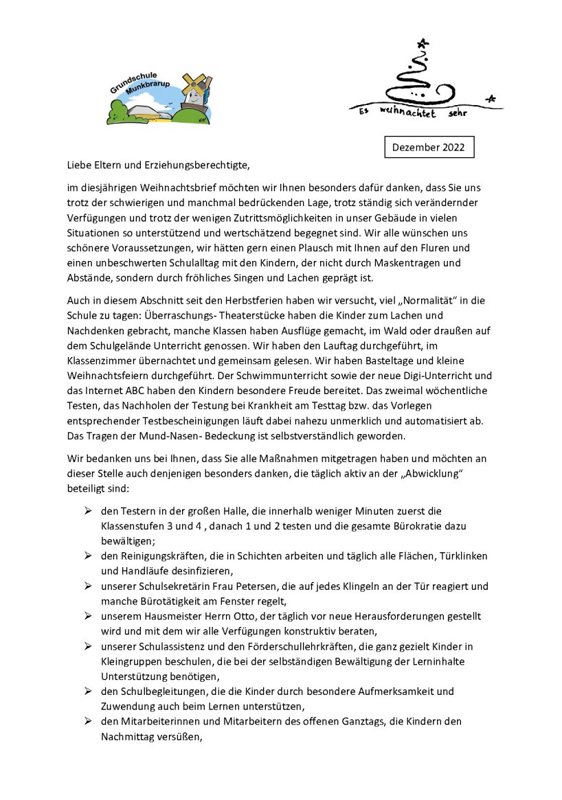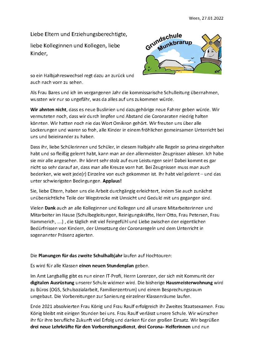 Liebe Eltern und Erziehungsberechtigte der Grundschule Munkbrarup!