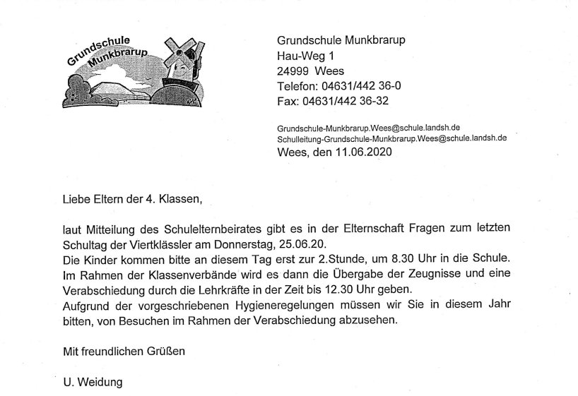 Vielen Dank und mit freundlichen Grüßen - das Kollegium der Grundschule Munkbrarup