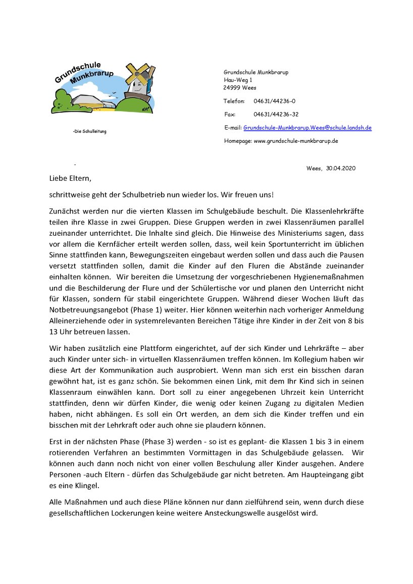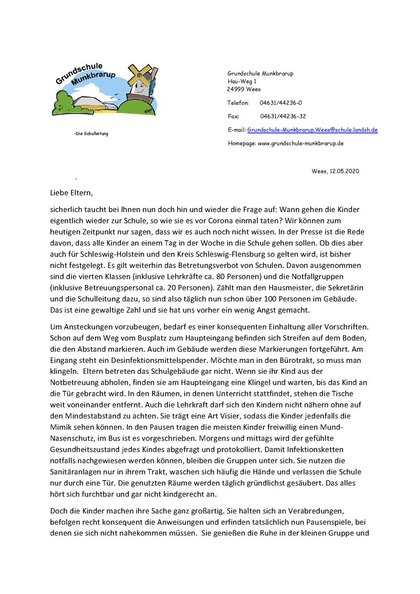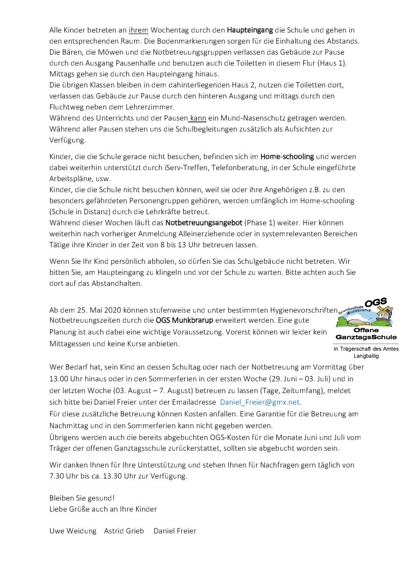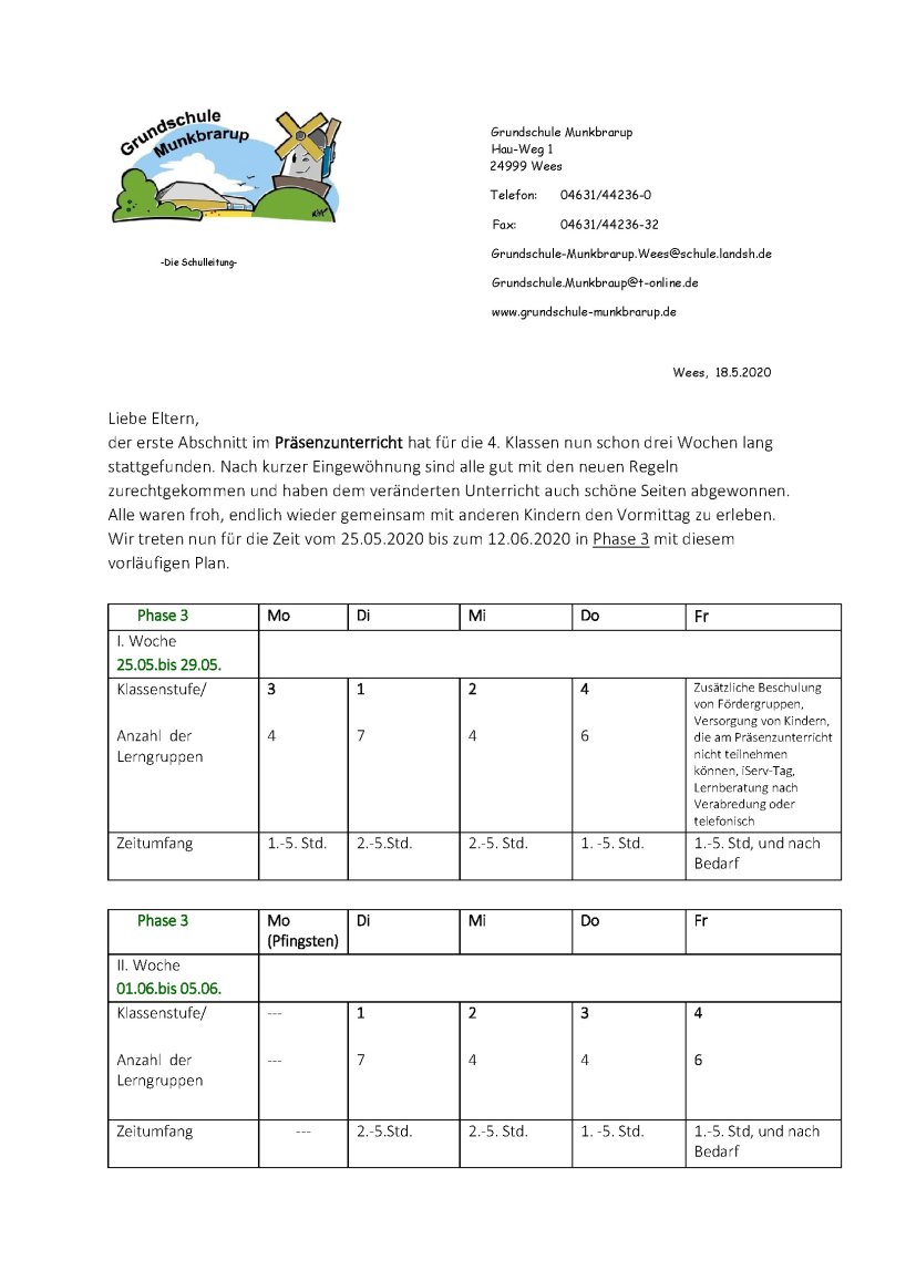 Elternbrief vom 18.05.2020 - Infos zum Unterricht ab 25.05.2020!