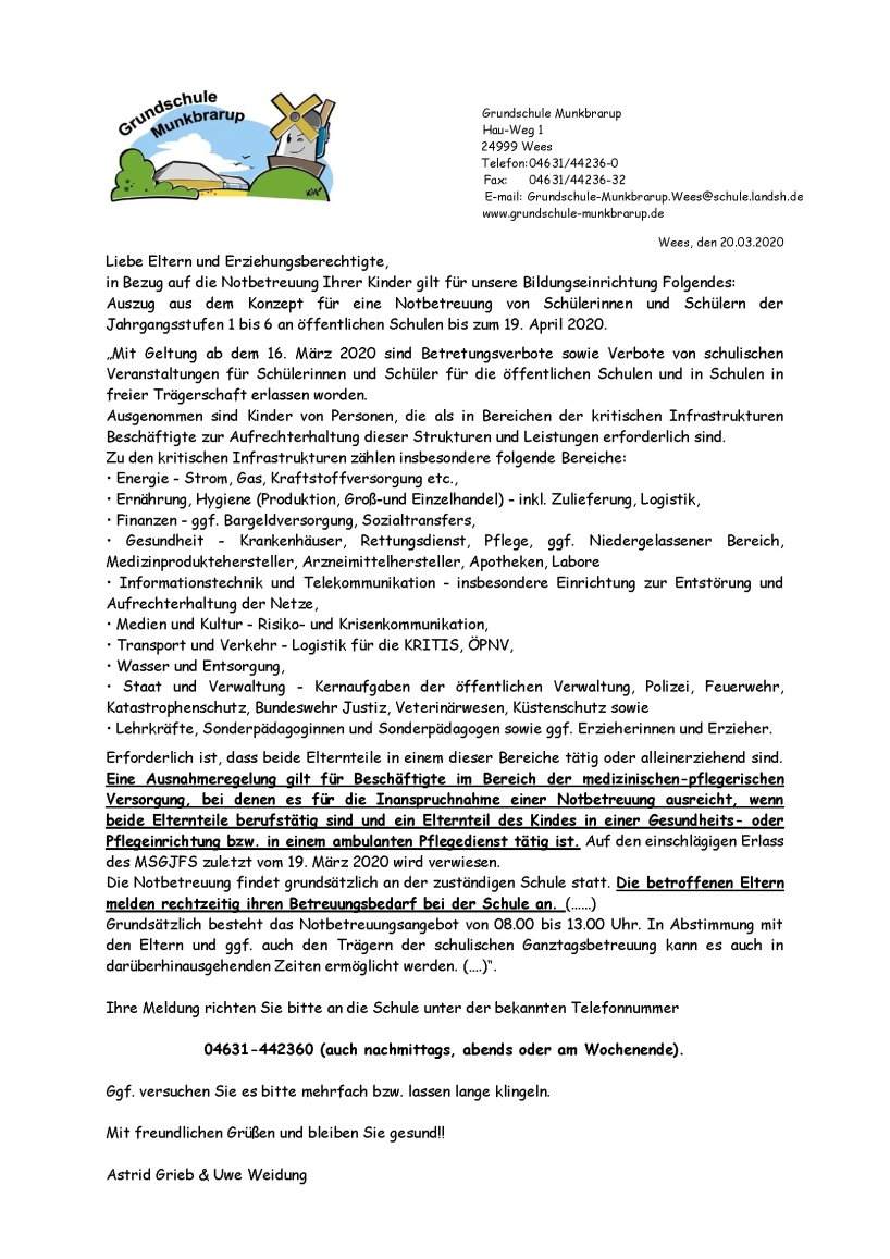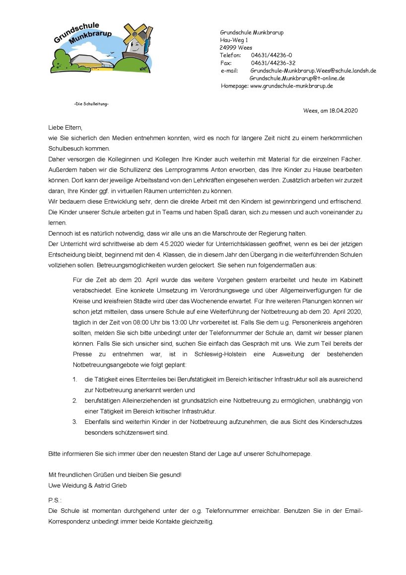 Elternbrief vom 18.04.2020 - Notbetreuung