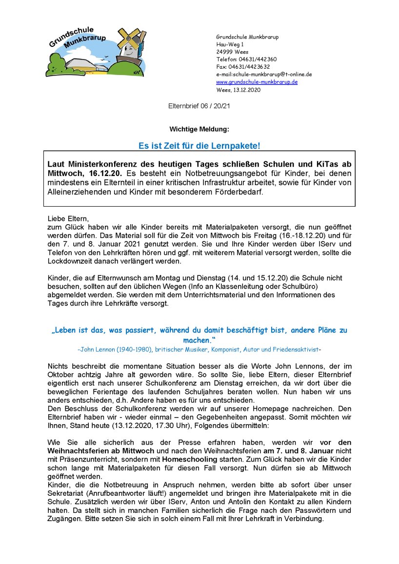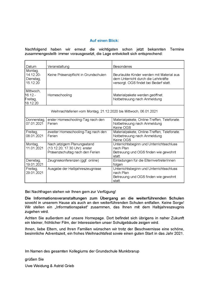 Elternbrief vom 13.12.2020 mit aktuellen Informationen!
