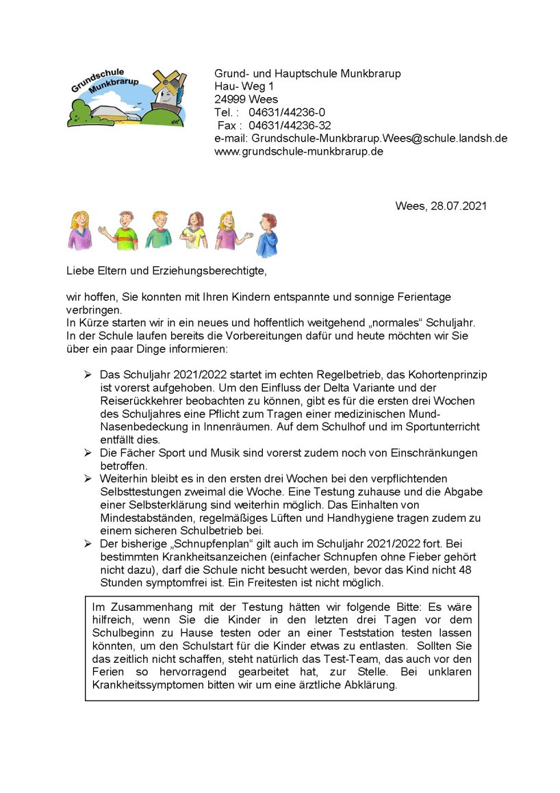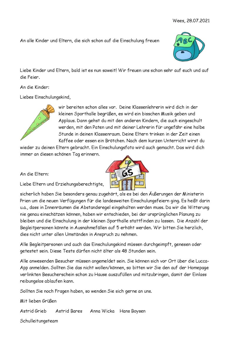 Elternbrief zum Schuljahresstart -- Elternbrief zur Einschulung