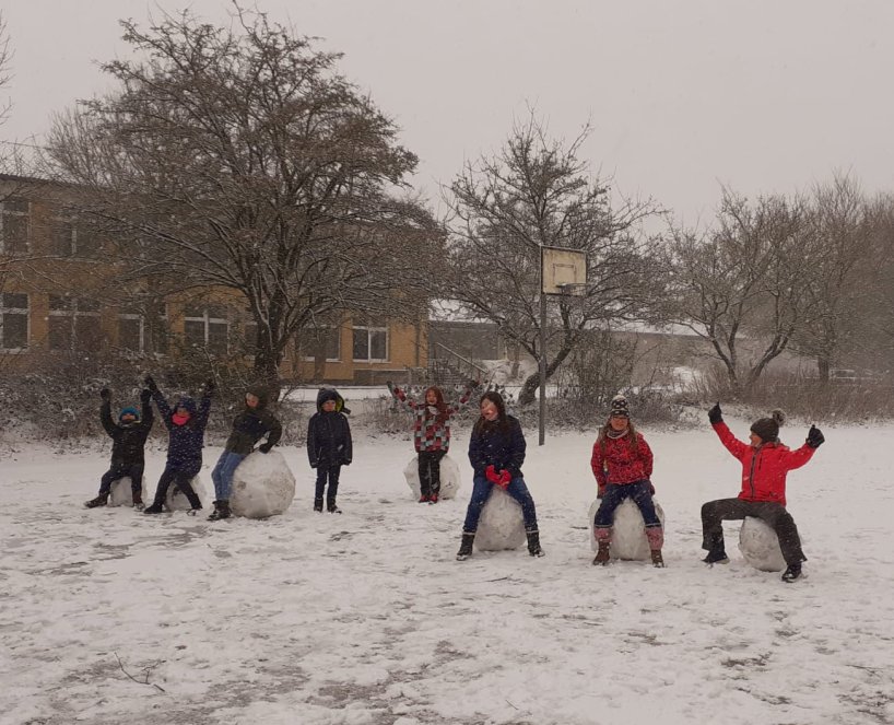 Endlich ist der langersehnte Schnee da!!! Die Schülerinnen und Schüler konnten es kaum erwarten, fröhlich hinaus in das Schneegestöber zu stürmen. Einfach mal frei und unbeschwert durch den Schnee rutschen, toben, den Schulhof mit Schneeengeln verzaubern und einen Riesenschneekugelwettbewerb zu veranstalten.