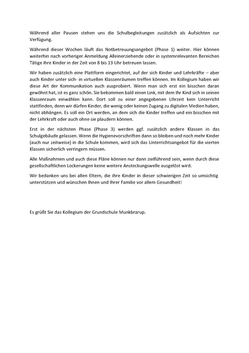 Unterricht für die 4. Klassen ab 6. Mai 2020!