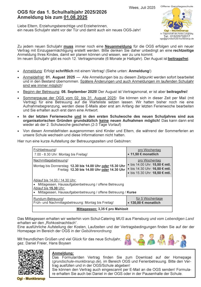 Allgemeine Informationen über die OGS fiindet man weiter unten auf dieser Seite!